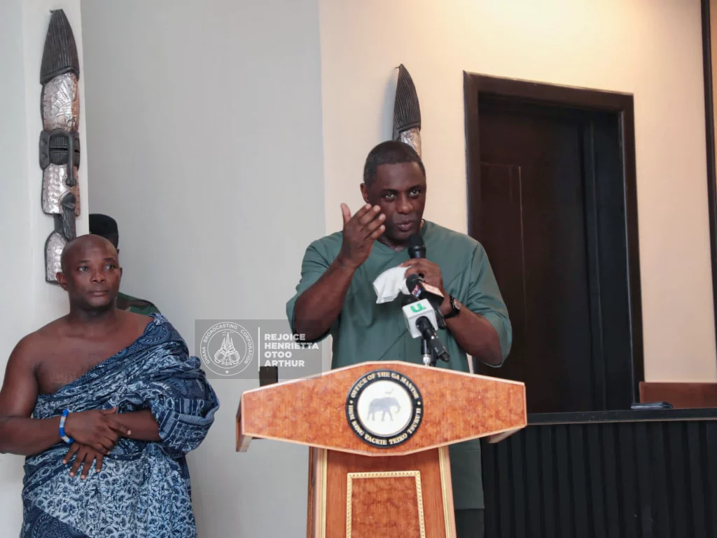 Le 25 mars 2025, Idris Elba foule à nouveau le sol d’Accra. Pas comme touriste, pas comme star hollywoodienne de passage. Il est reçu en grande cérémonie au Ga Mantse Palace, sous le règne du roi Tackie Teiko Tsuru II, qui le reconnaît officiellement comme un fils de la terre ga — cette honneur royal accordé à ceux dont les racines et les actes nourrissent la nation.